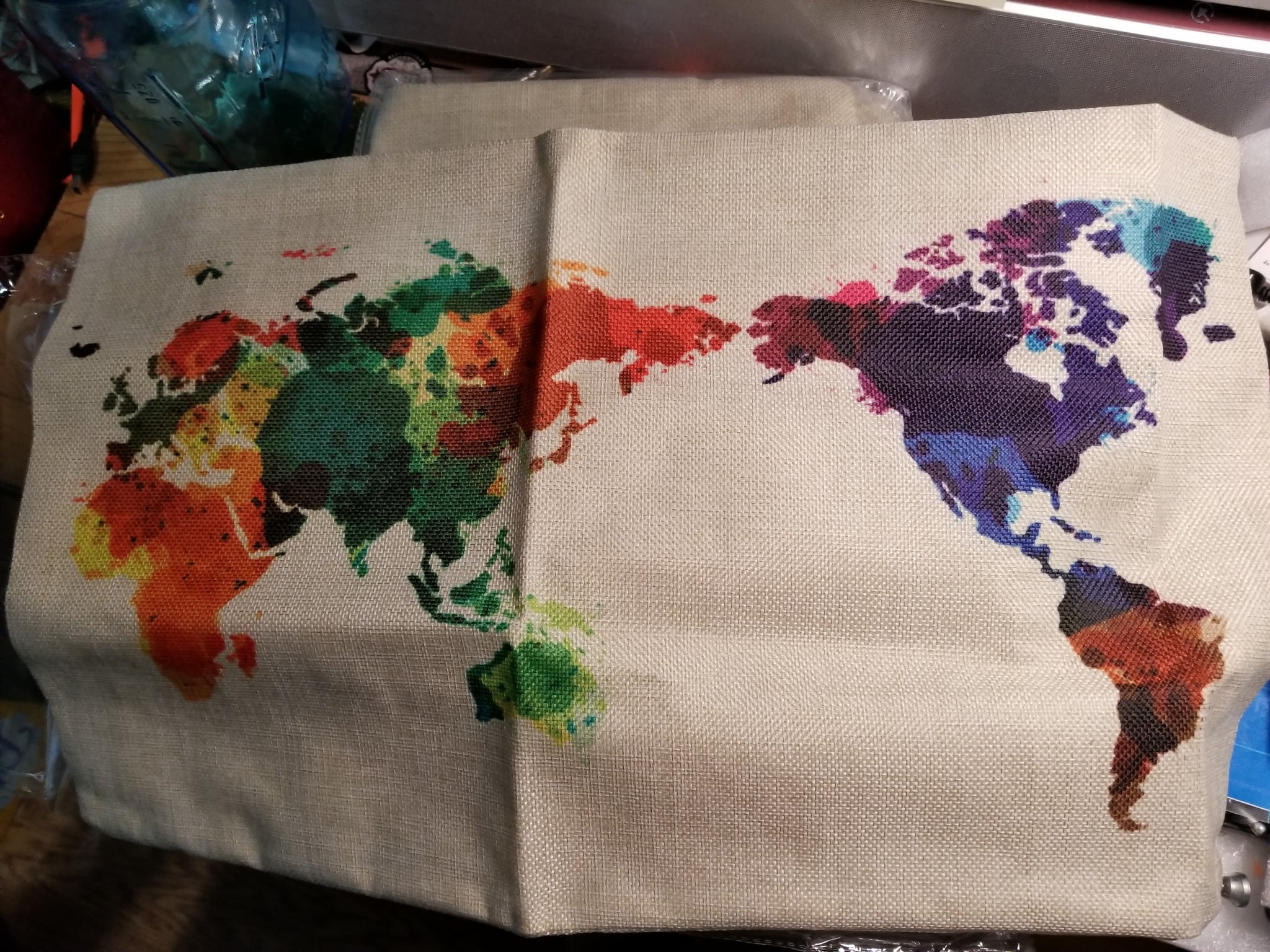 Old world burlap look, generous zipper, bright colors go with any decor.